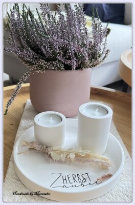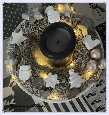 Ein Ständer aus Holzklötzchen für 4 Kerzen und den Holzständer habe ich beplottet.