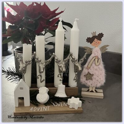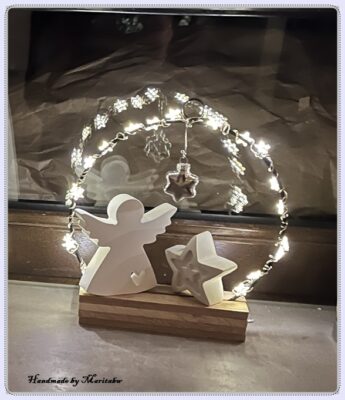 Liebe Marita, dein Engelchen aus der SSÜK wacht hier über die Weihnachtsdeko im Wohnzimmer 🙂