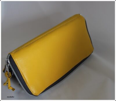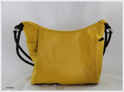 Heute habe ich dann noch eine Grete passend zur Dany genäht, aus gelbem Leder.