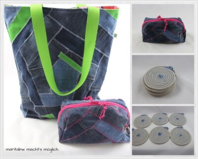 Toll die vielen bunten Stoffe und die Taschen aus Jeansstücken mag ich auch sehr von dir. Sind die Untersetzer aus Seilen gemacht oder Sisal? So viele Herzenswünsche an einem Tag sind schon toll zu sehen. LG Ingrid