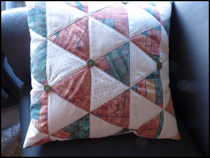 da kann ich den Stoff verarbeiten und hier ist das Patchworkkissen: