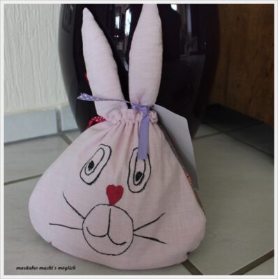 und die beiden rosa Hasenbeutel sind für meinen Mann und mich.