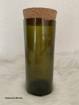 Ein Vase mit Korken aus einer alten Weinflasche selbstgemacht.