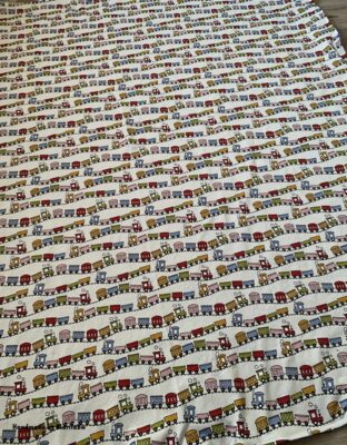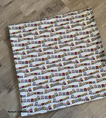 Ich habe mich für den schönen Kinderstoff Tschu Tschu entschieden, der gefällt Kindern bestimmt.