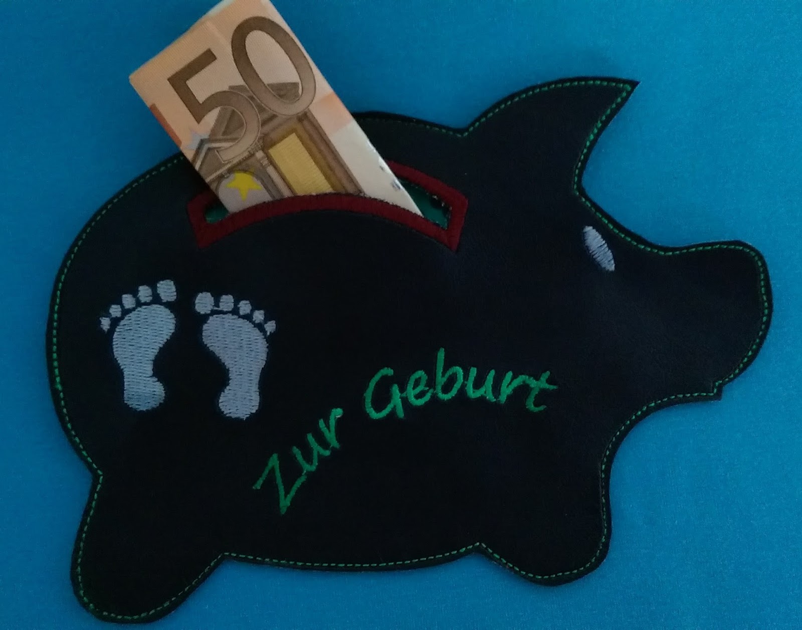 Die Sparschweinchen werden komplett in der Stickmaschine gestickt.