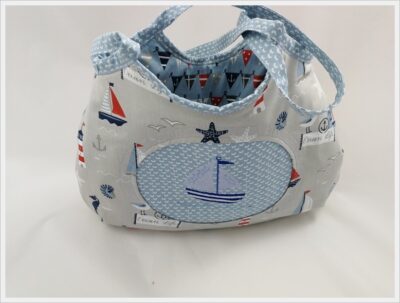Die kleine Tasche hat auch ein maritimes Futter und ist mit Thermolan gefüttert.