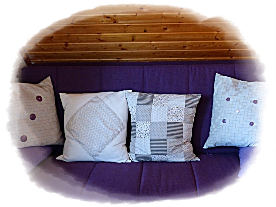 Heute mal ein paar Kissen, die ich für mein Nähzimmer genäht habe. Recht einfache, die aber gut auf die Schlafcouch passen.