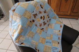 Die Decke ist ca. 1,20m x 1m groß und ich habe den Namen und einen Spruch,