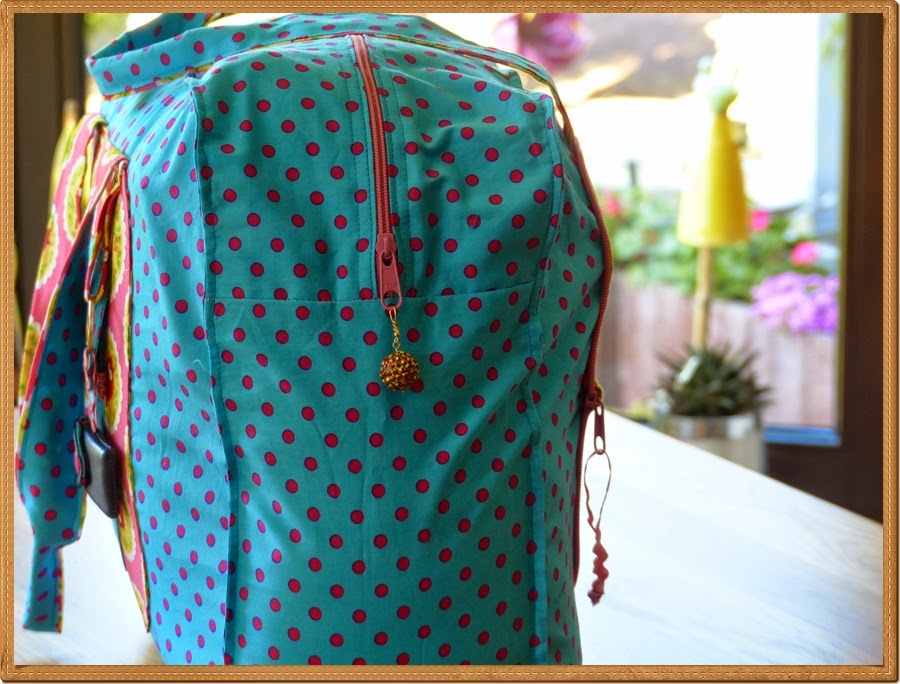 14. Die Tasche sieht sehr schön aus mit dem gepunkteten Stoff! Bei mir sind merkwürdigerweise die Nähte innen…muss ich noch'mal schauen, wo mein Fehler war…