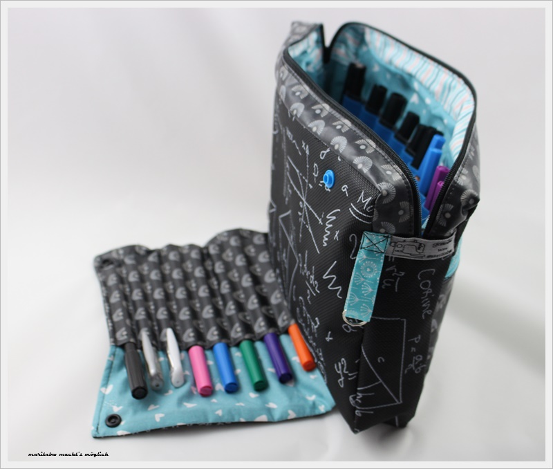 Deine Tasche ist ganz toll geworden . Ich finde gerade diese mit der ausklappbaren Stiftetasche so genial praktisch. Der Stoff passt super gut zu dieser Tasche und gefällt mir sehr.