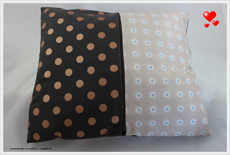 Das Kissen sieht wunderhübsch aus. Ich hätte jetzt gedacht, die zweifarbige Rückseite muss so sein. Sieht doch wirklich schick so aus.