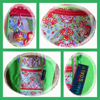 Zwei kleine Details habe ich noch und zwar im Hinblick auf die Fußball WM in Brasilien habe ich an dem vorderen Reißverschluß einen Ohrring in Deutschlandfarben angebracht. Ebenfalls einen Anhänger mit der Aufschrift Goal Goal ( es ist Stoff auf Filz appliziert). Die Anleitung dafür gibt es wahrscheinlich morgen.