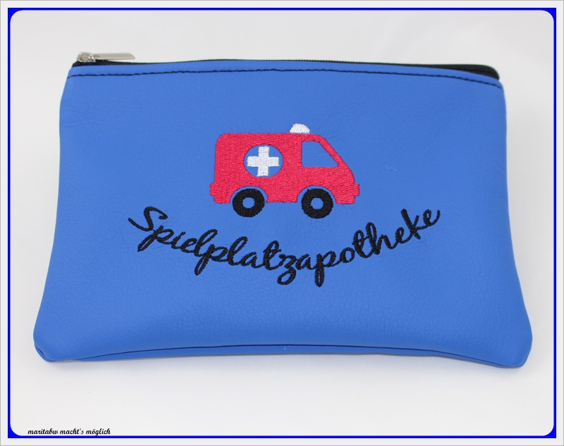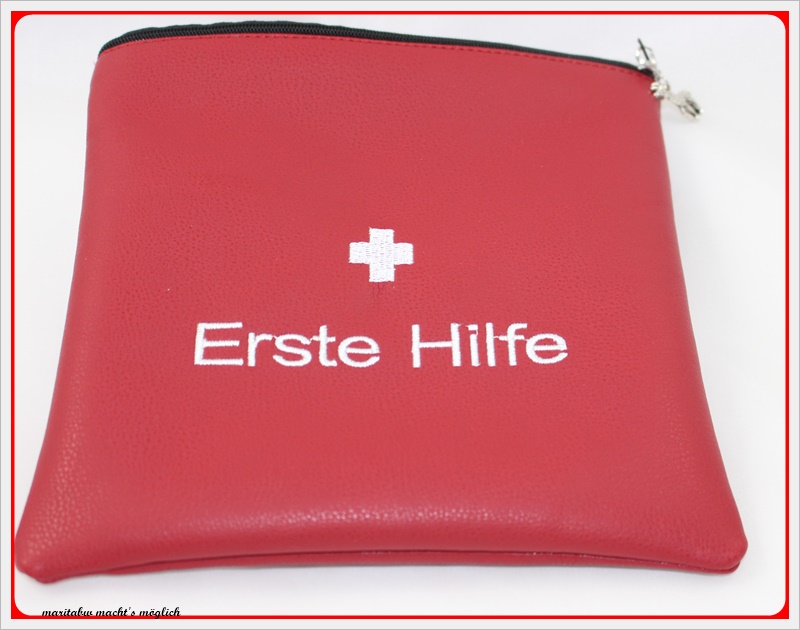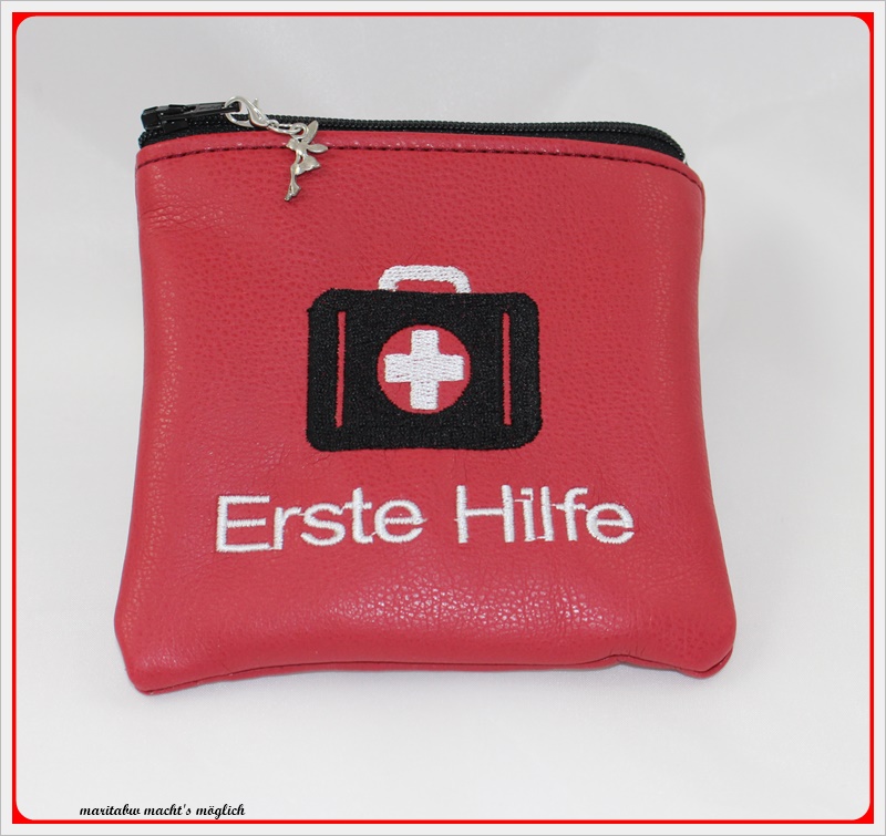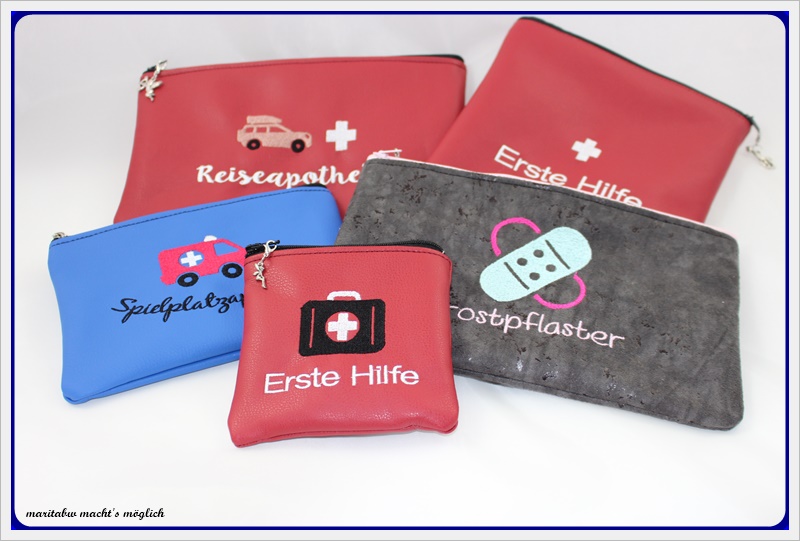 das ist mal eine ganz fantastische Idee, solche 1. Hilfe-Täschchen zu nähen, die mit der Stickmaschine gleich für ihren "Einsatz" gekennezeichnet sind!!! Echt super! Dann kann man z. B. bei der Spielplatz-Apotheke gleich die Dingen rein tun, die man erfahrungsgemäß für kleinere "Unfälle" auf dem Spielplatz braucht! Ganz "süß" finde ich das "Trostpflaster-Täschchen"! Das weckt in mir direkt Erinnerungen an meine Tochter…Als kleines Mädelchen hatte sie für den kleinster Kratzer immer gerne einen möglichst "dicken" (auffälligen!) Verband und natürlich ein "Trostpflaster" in Form von irgendetwas zum Naschen!!! Lang ist es her…