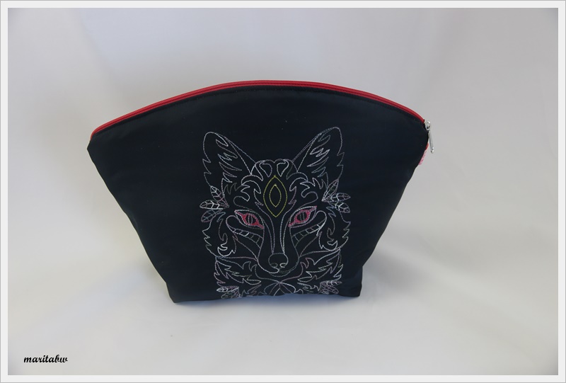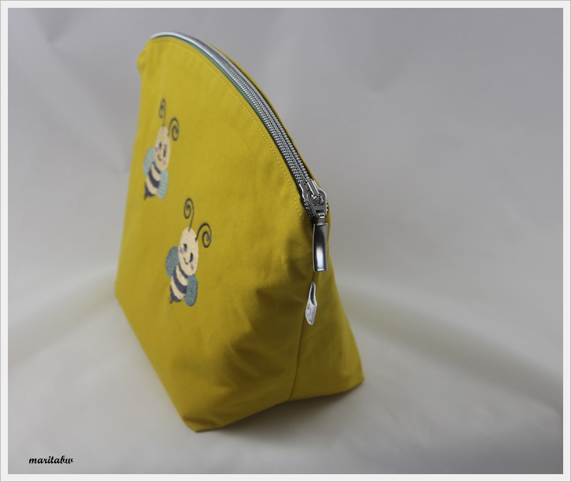 Aus einem gelben gewachsten Reststück habe ich diese Kosmetiktasche genäht