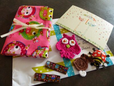 daß sehr liebevoll verpackt war. Vielen Dank liebe Susanne für dieses Päckchen. Sie hatte mir zu meinem Gewinn auch noch einen kleines gehäkeltes Häschen , 2 Aufnäher und einen Schokoladen Käfer dazu gepackt. Seht nun selber: