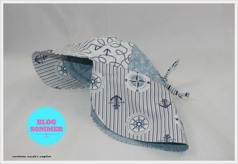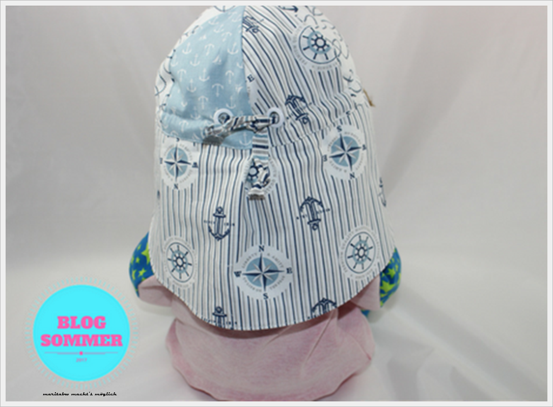 huhu liebe Marita.Das ist ja mal ein toller Hut.Der Nackenschutz ist so wichtig .Da sind die Kleinen so empfindlich und nun gut geschützt. Der Stoff passt prima für so einen Hut.