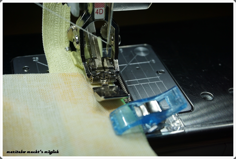Nachdem die Tasche verstürzt ist, näht ihr oben einen Tunnel
