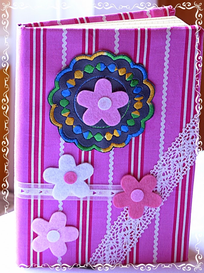Ein einfaches Notizbuch ist langweilig und daher habe ich es mit Stoff bezogen und dekoriert: