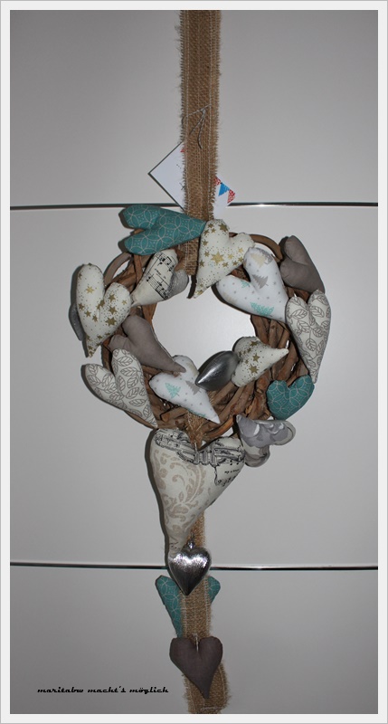 Hier der wunderschöne Kranz mit den tollen selbstgemachten Herzen.