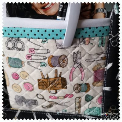 Das Wandutensilo ist gearbeitet aus 9 kleinen Blöcken, die dann mit der Nähmaschine aneinander genäht werden.