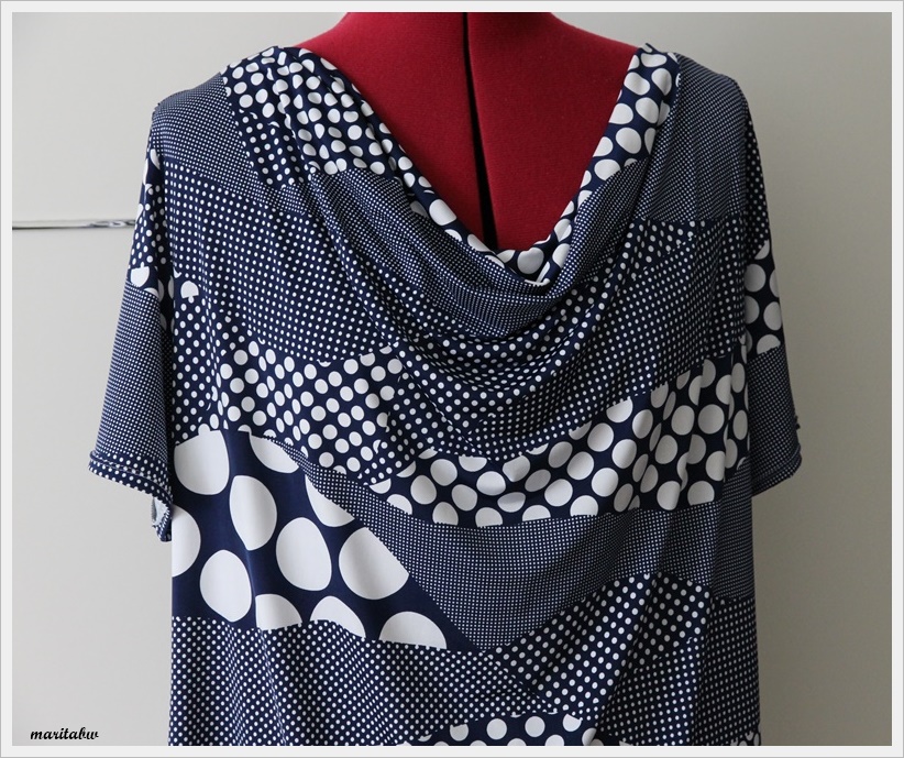 Da der Jersey sehr leicht ist, fällt der Wasserfallausschnitt sehr gut.
